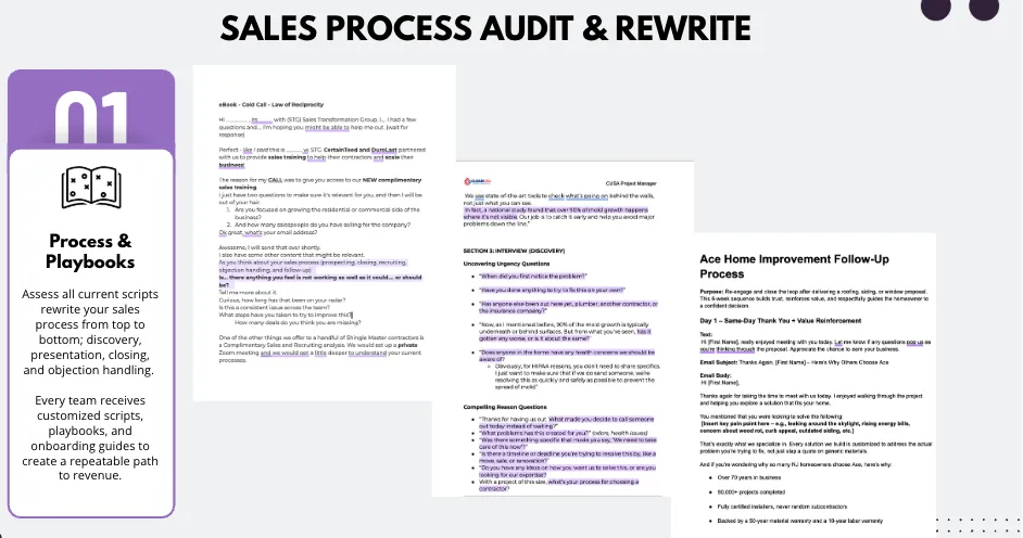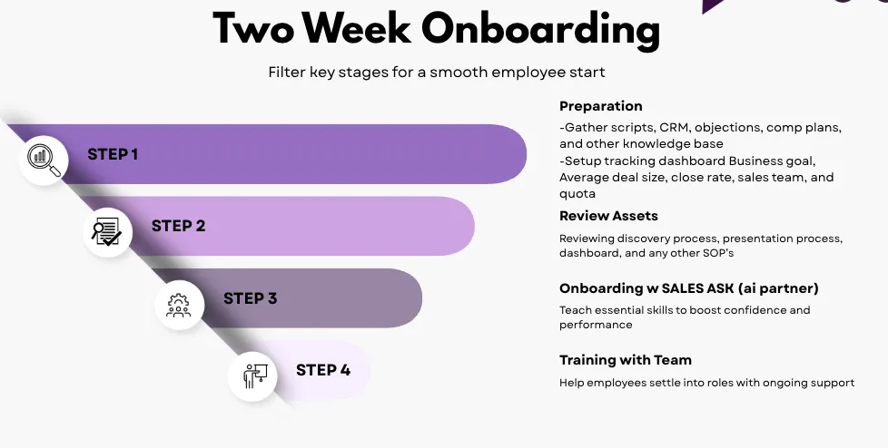 - Onboarding Call (gather scripts, CRM, objections, comp plans).